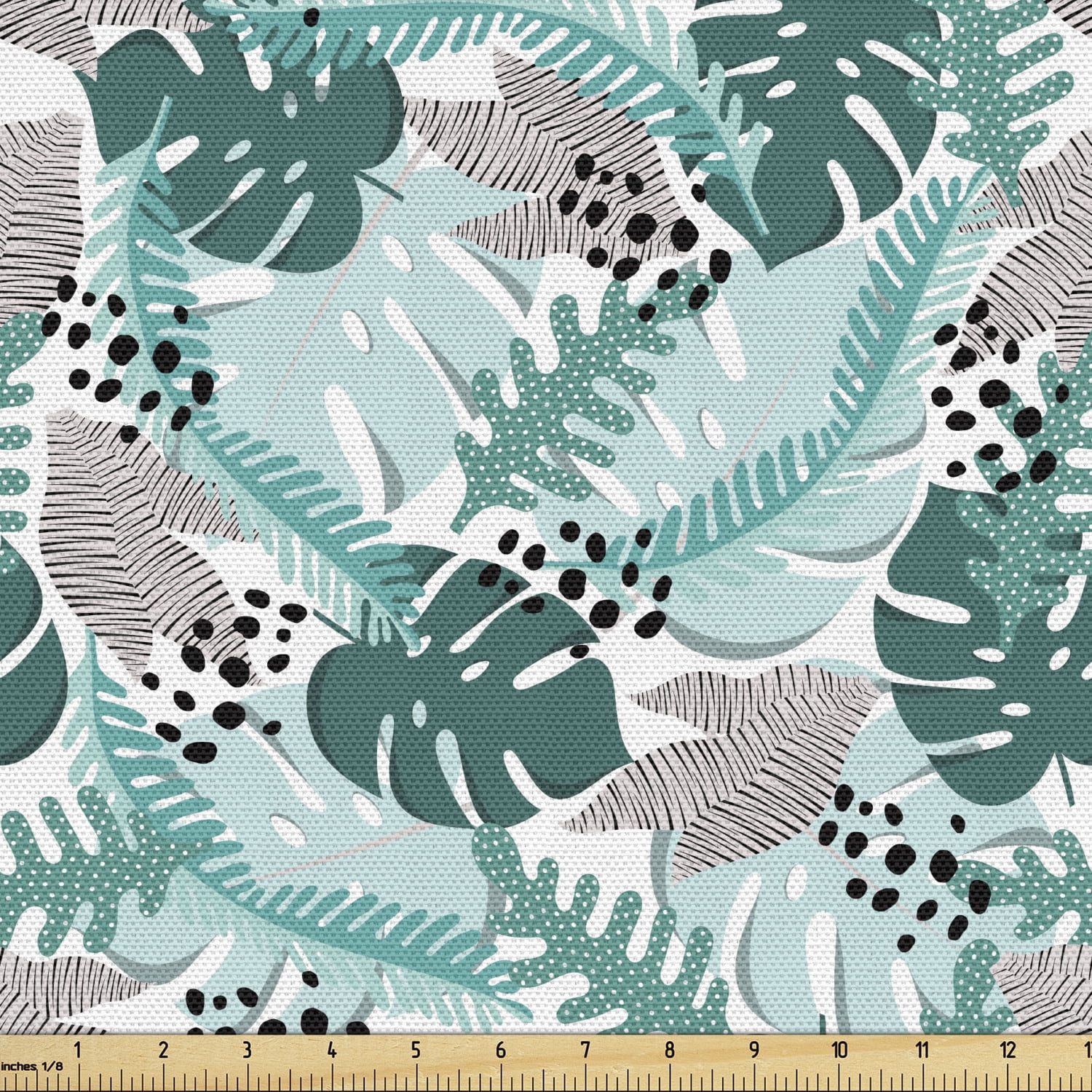 Tropical Fabric By The Yard Abstract Design Monstera Banana Palm Tree Leaves Geometric Stripes Decorative Upholstery Fabric For Chairs Home Accents Mint Green Dust And White By Ambesonne Walmart Com